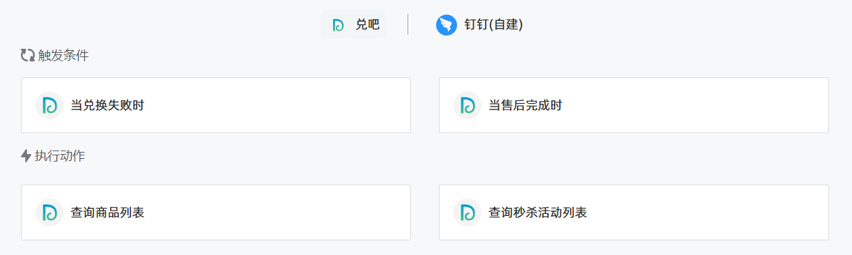 - 根據提示選擇觸發和執行應用:兌吧和釘釘,選擇操作,添加賬號最后完成配置