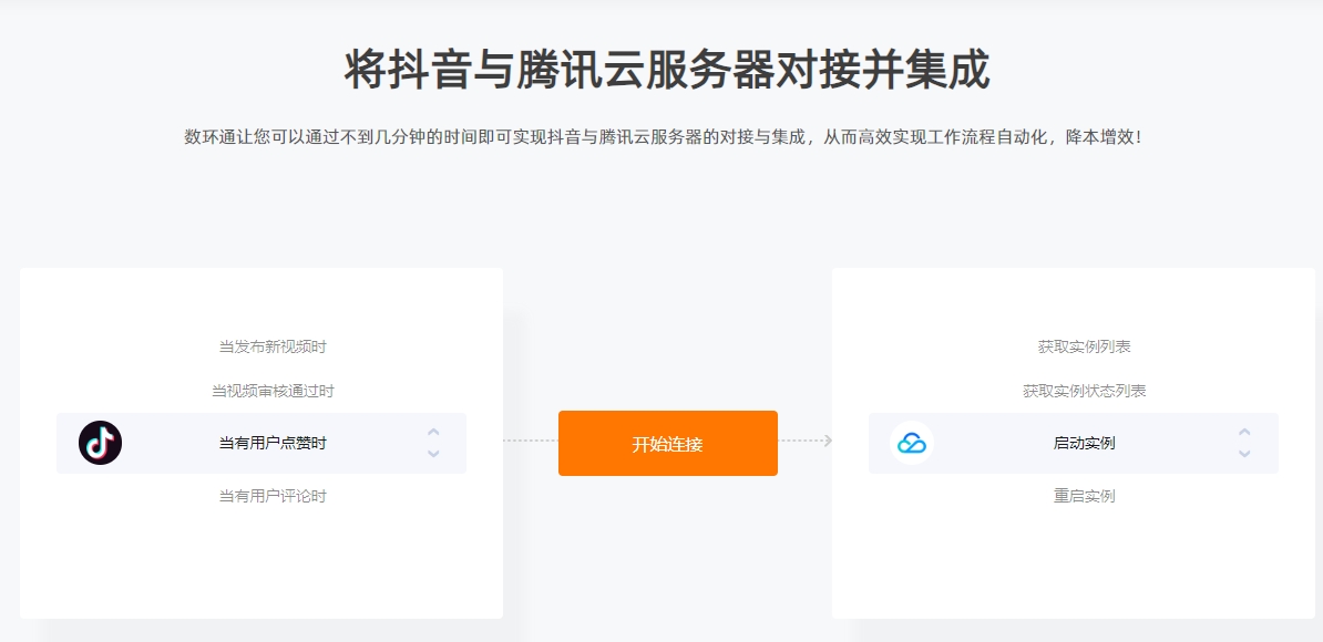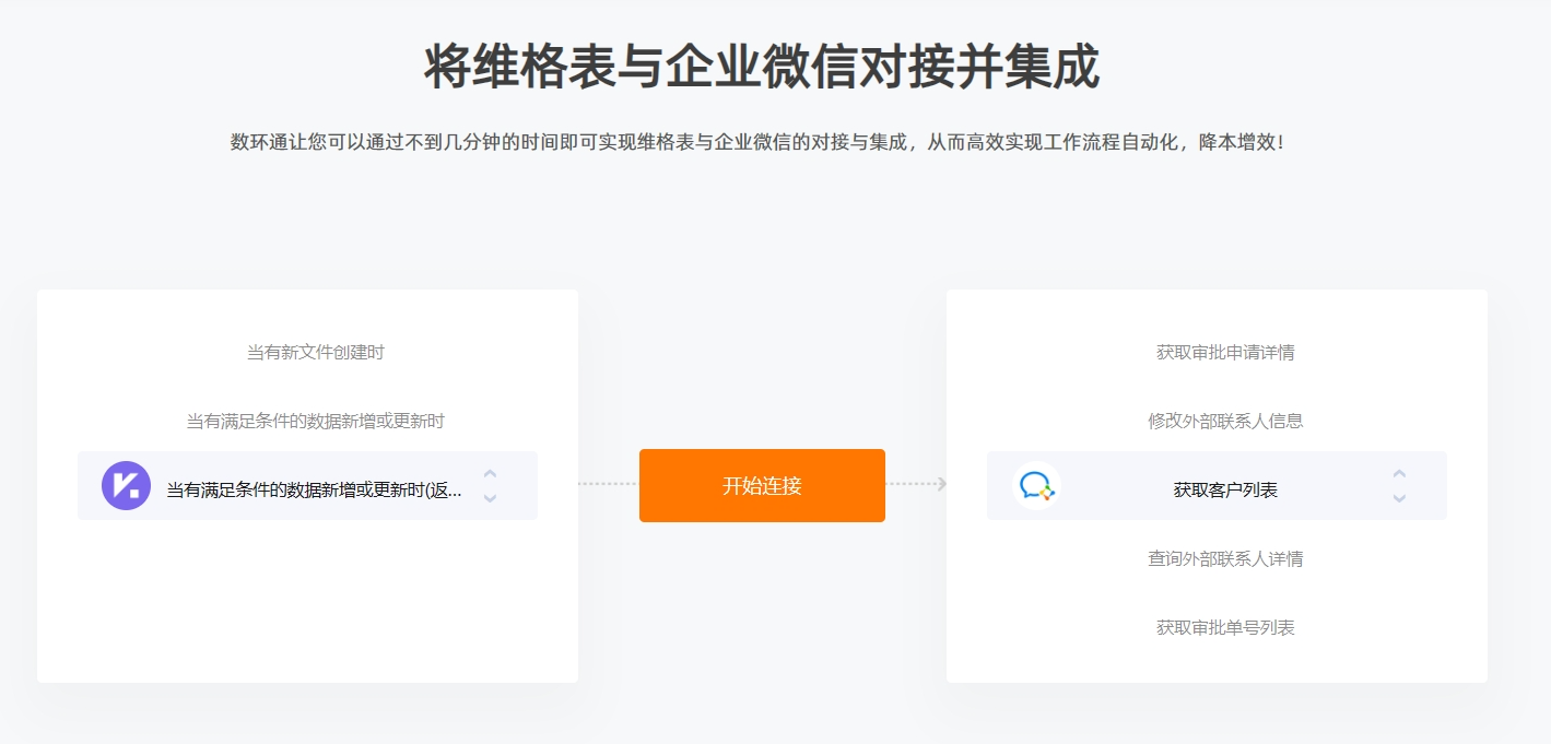 以上是抖音、企業(yè)微信群機(jī)器人和維格表的定時對接場景,數(shù)環(huán)通也將持續(xù)助力更多企業(yè)伙伴實(shí)現(xiàn)降本增效。目前,數(shù)環(huán)通已對接打通矩易、騰訊文檔、兌吧、短信寶、拼多多、百應(yīng)等600+應(yīng)用系統(tǒng),擁有超10000+指令動作,且持續(xù)周周更新。