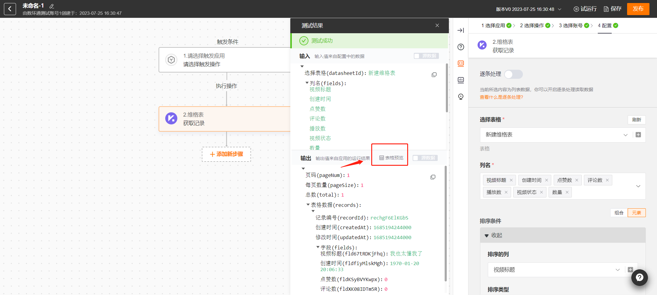 1 新增測試預(yù)覽:輸出支持表格預(yù)覽