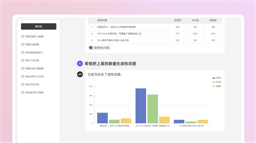 極速連接的數據調用:LinkBot是你的智能數據管家,實現極速連接數據。通過與LinkBot對話,用戶可以直接調用各種數據,毫不費力地訪問企業的數據寶庫。無需復雜的操作,讓你對業務數據了如指掌。LinkBot還可以將獲取的數據自動形成可視化分析圖,幫助企業進行經營決策。