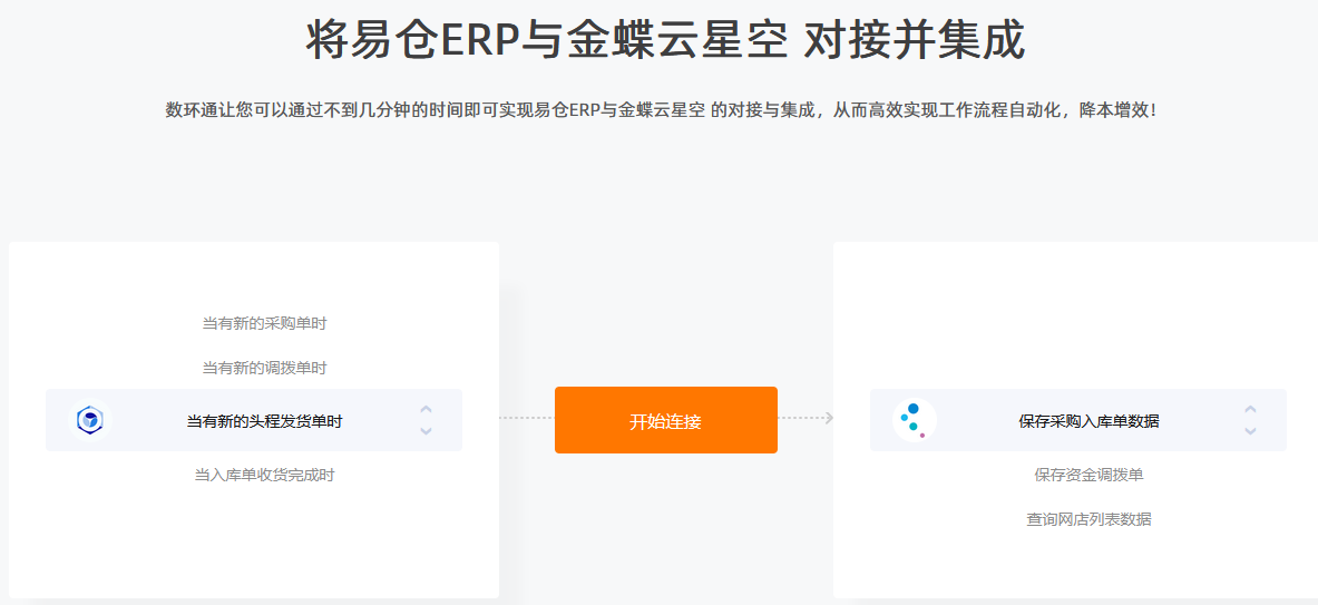 易倉ERP與金蝶云星辰的對接只需幾分鐘